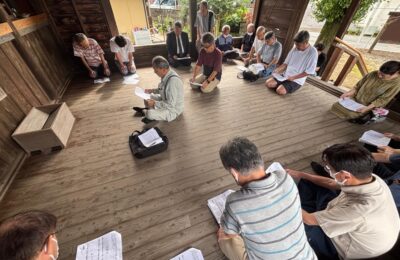作業終了後、次年度の打ち合わせや報告を兼ねて、御観音様の境内にて慰労会が開かれました。