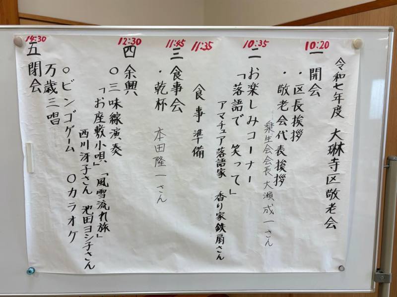 大琳寺区ホームページ > 大琳寺区の行事 > 令和7年度大琳寺区敬老会が開催されました。