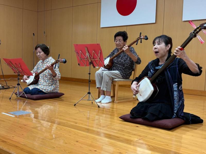 食事の後は、「三味線演奏」です。「お座敷小唄」「風雪流れ旅」を披露されました。