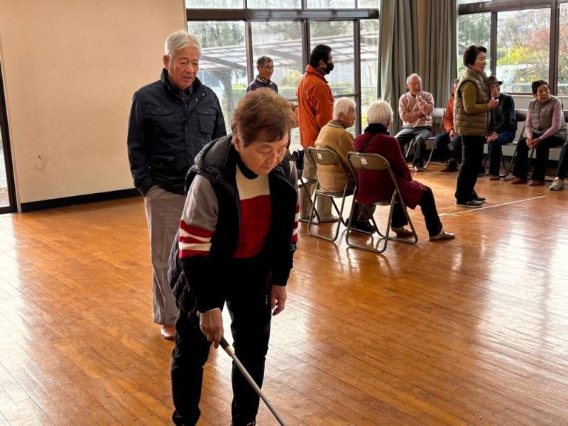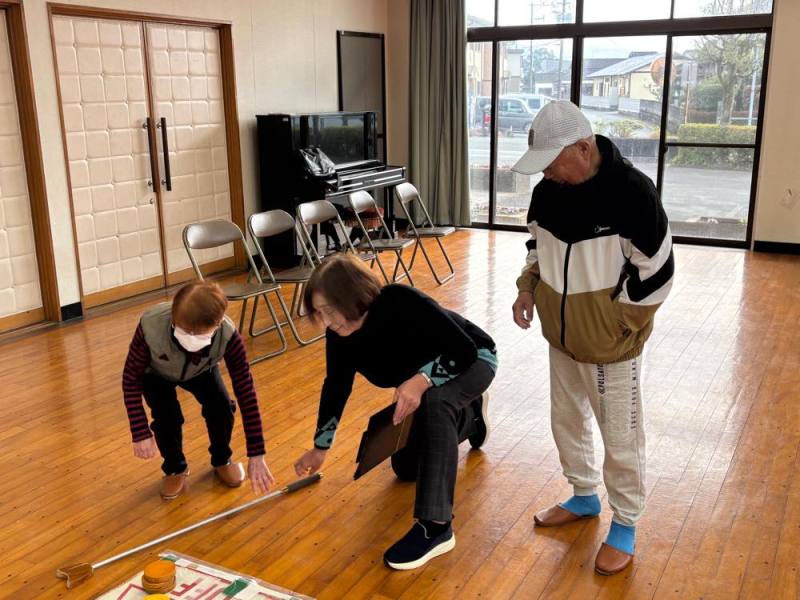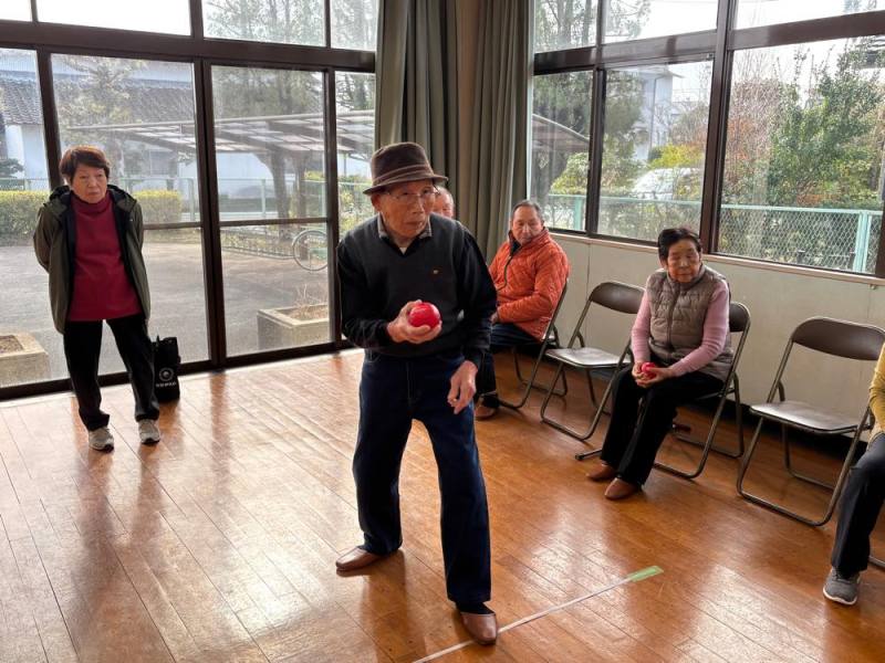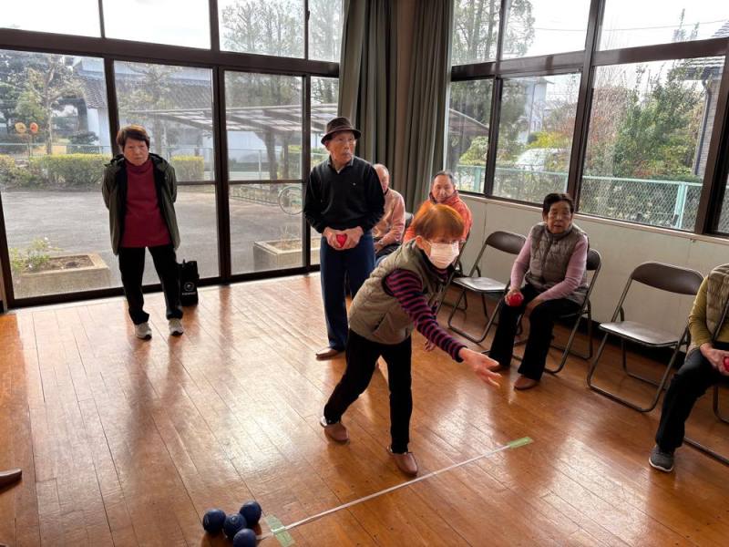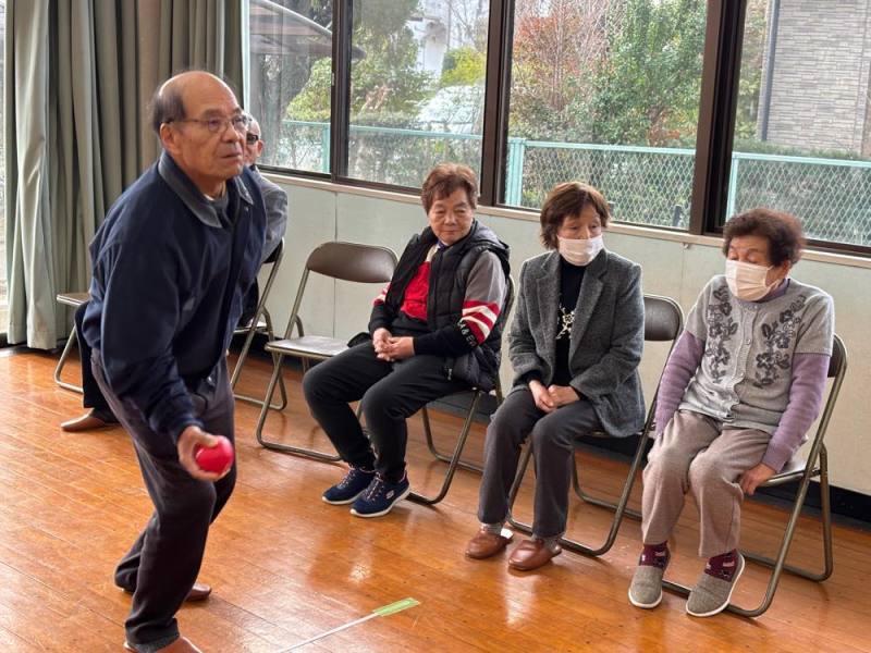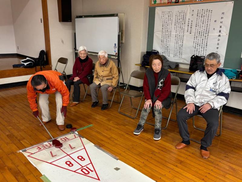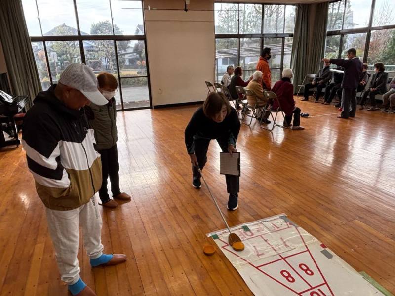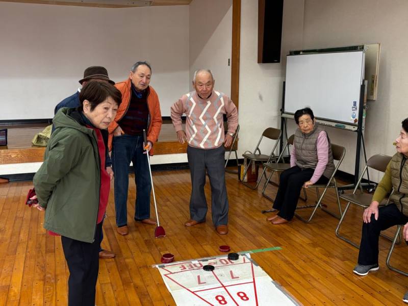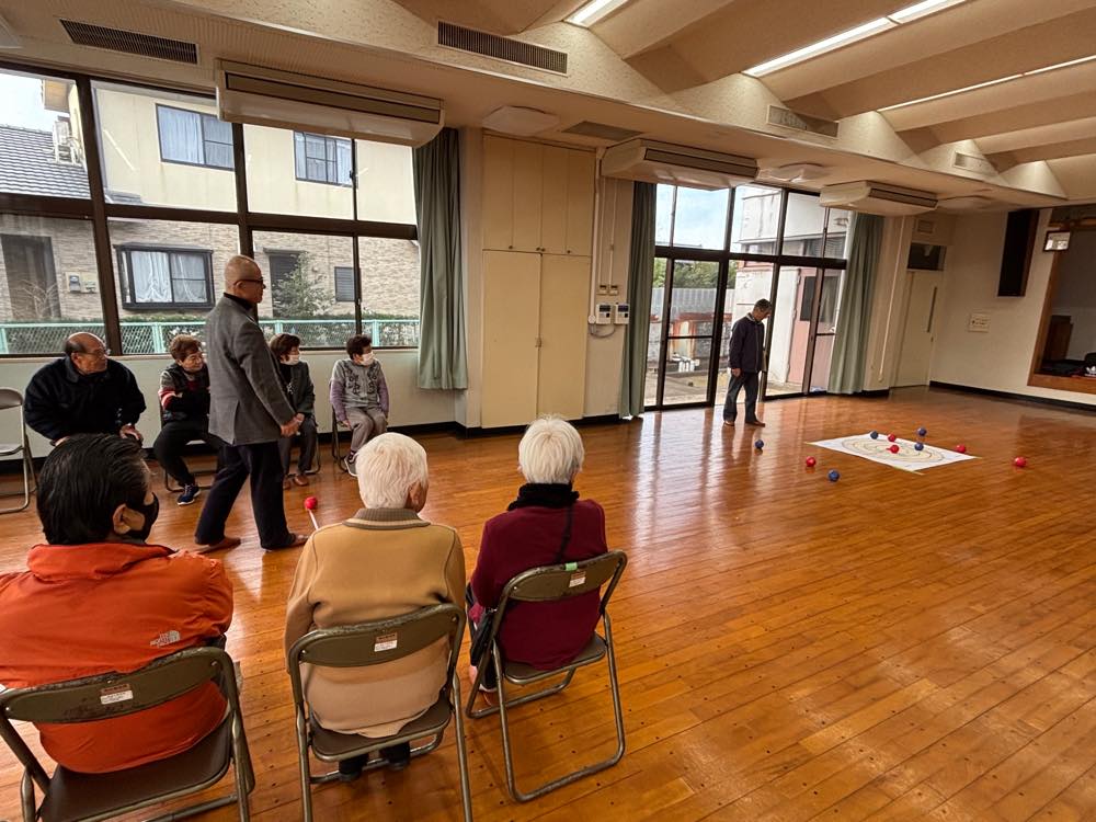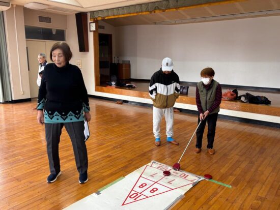 ゲームは4組に別れて、ターゲットボッチャとシャッフルボードで真剣勝負。でも和気あいあいで楽しみました。
