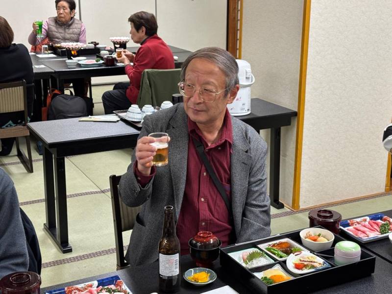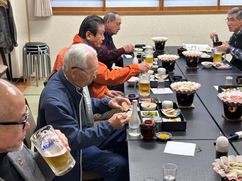 西部市民センターにてゲーム大会の後は、七城温泉ドームへ移動して昼食会とお楽しみ福引です。